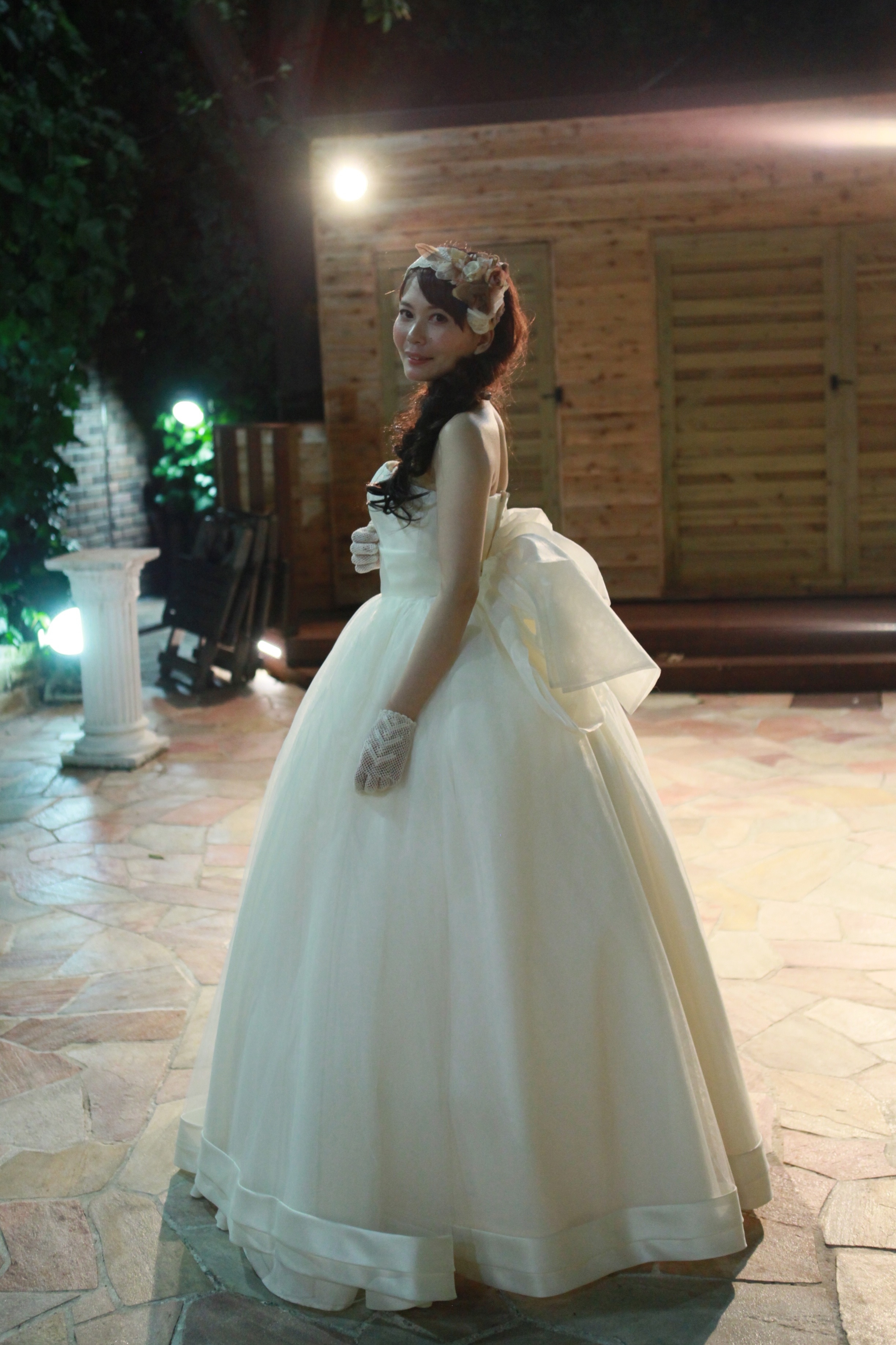 こちらは、開宴直後ですかね?ミカドのショールをプラスして、ベールを取ってからも肌の露出が少ないように工夫しました。