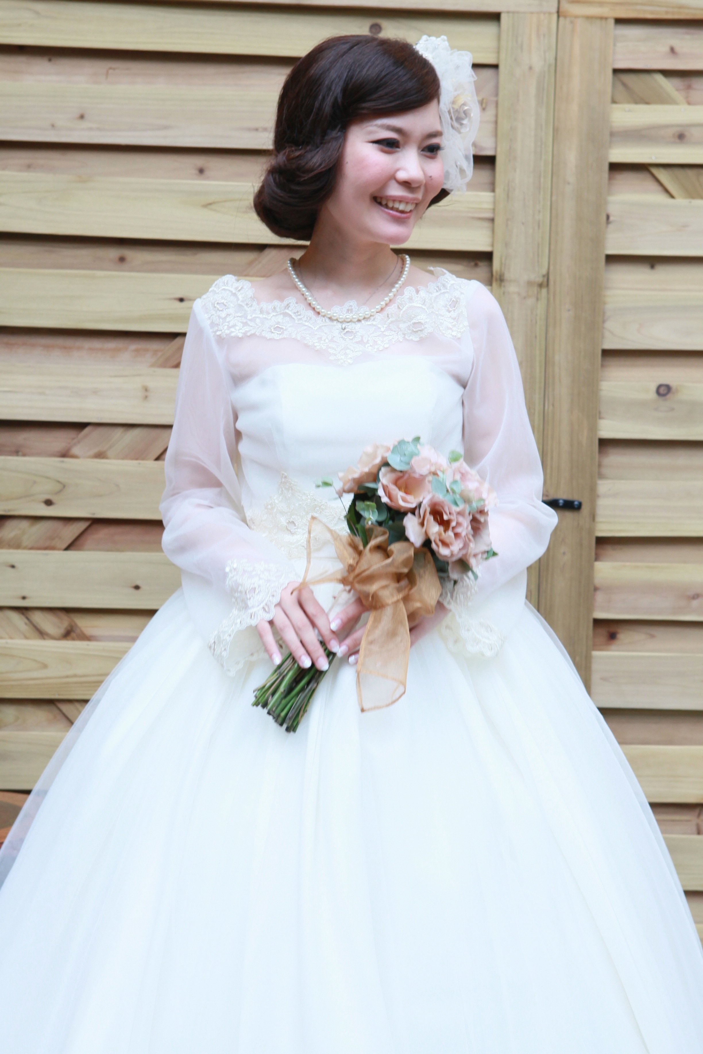 そんなわけで、二次会はボブ風の髪型にオーガンジーのヘッドドレス。