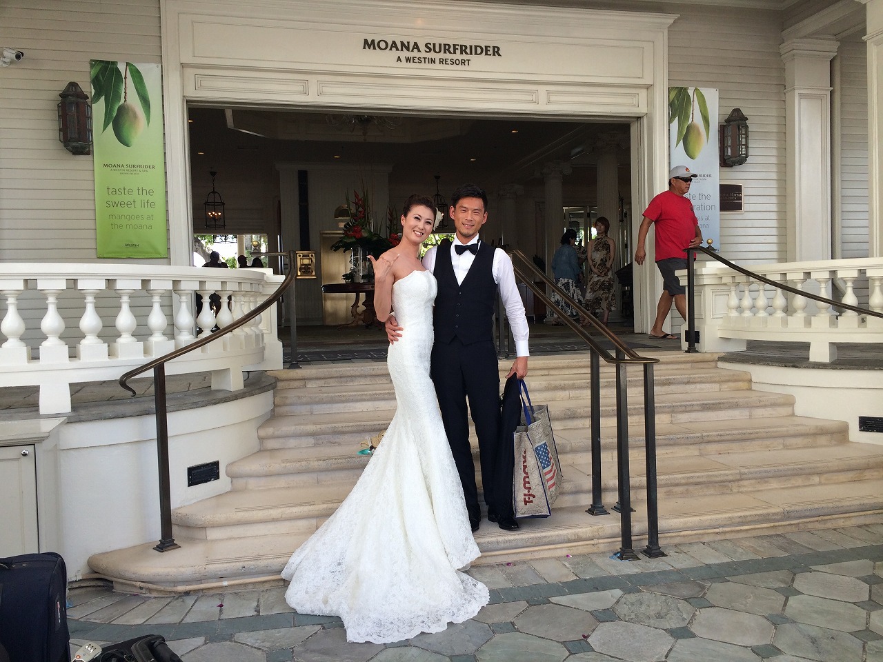 ハワイ挙式のお写真です。MAIKO様、抜群のプロポーション・・・そりゃマーメイドだよね!っと、思わず言ってしまいそうですよ。