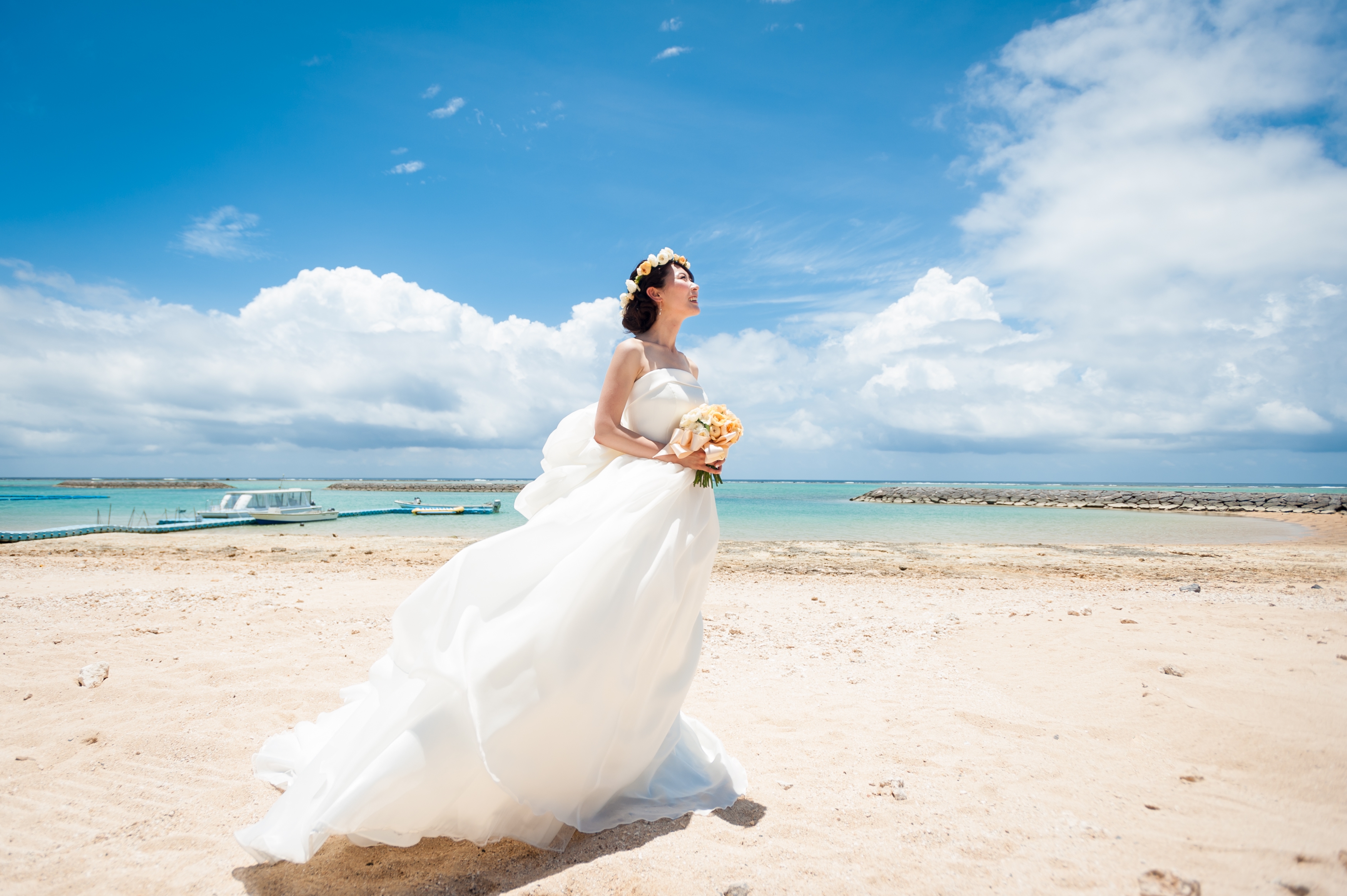 何といっても石垣ですから、ビーチでオーガンジーが光ります。