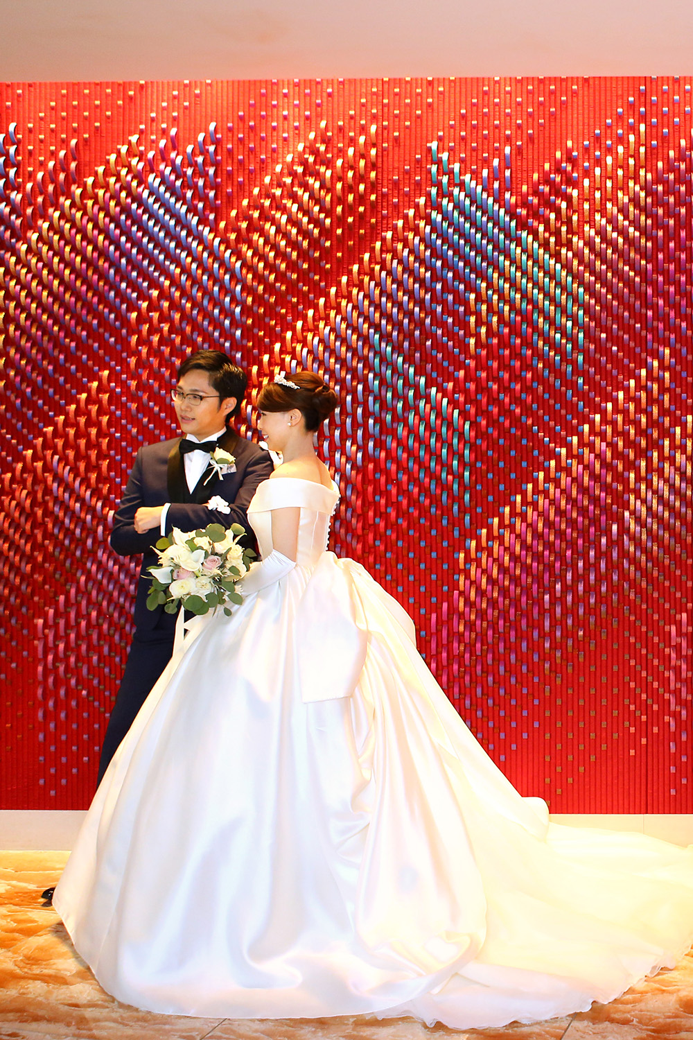 新しいミカドを使用したプリンセスラインの上品なドレスです。 幅広のロールカラー。 たっぷり目のスカートから除くロングトレーンは、チュール素材だから華やかに広がり、 バックシーンが楽しみになります。